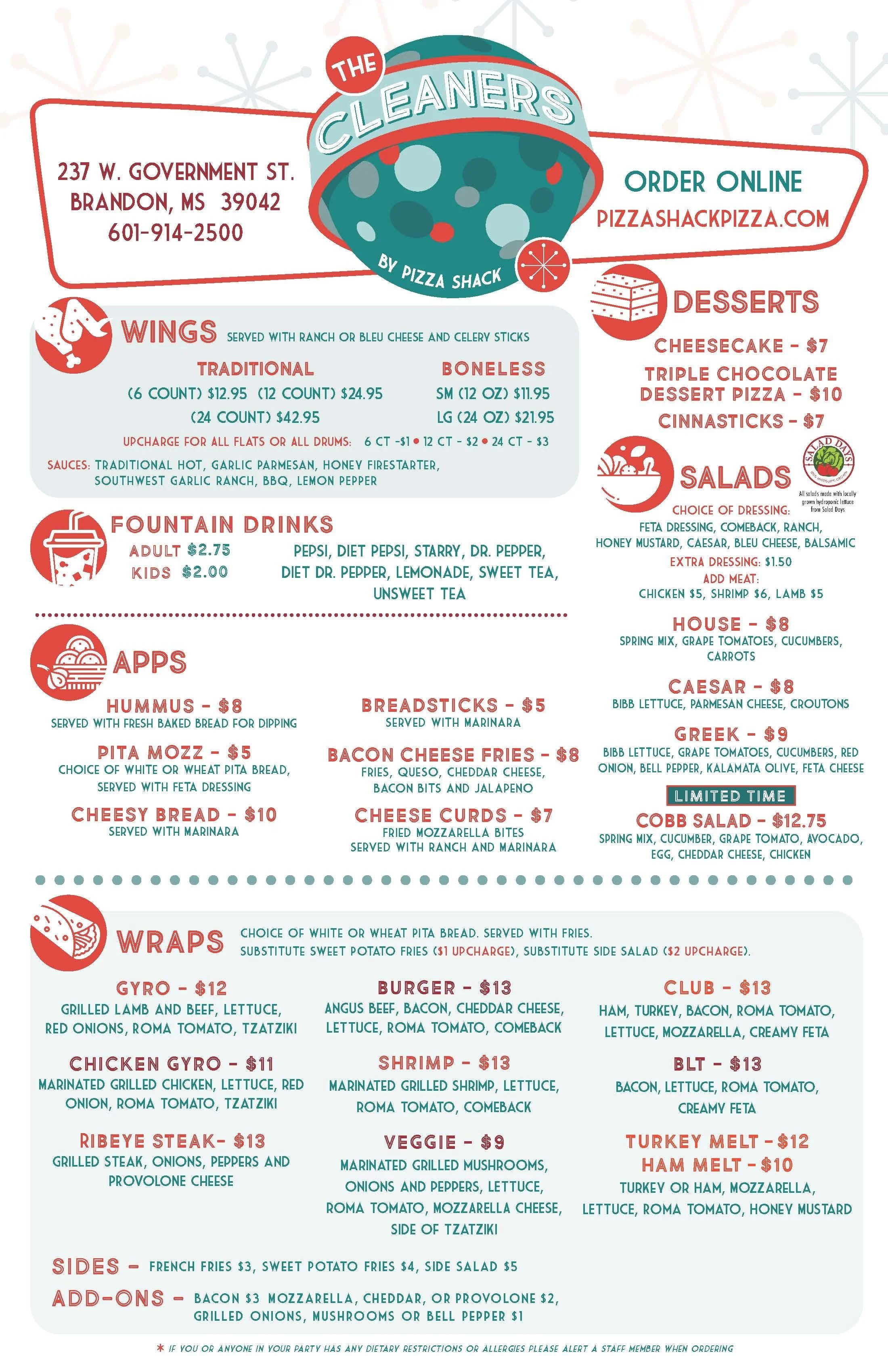 If you're looking for a delicious Brandon pizza joint, The Cleaners by Pizza Shack is the perfect place!